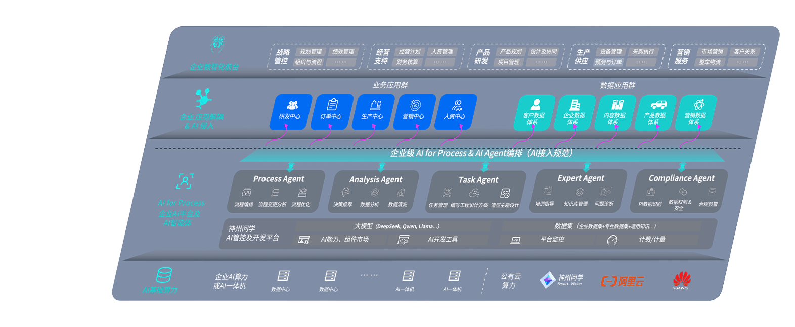胜天国际问学智车解决方案是一套基于AI技术的汽车行业智能化系统,,,,覆盖从底层算力到顶层AI应用的全栈方案。。。方案由算力层、、模型层和应用层组成:算力层,,,方案支持多种一体机配置,,具备云端灵活部署、、、多云适配以及动态优化计算资源的能力;模型层,,,,胜天国际问学平台版提供了企业级AI应用一站式构建与管理平台,,支持基于后训练强化技术的汽车企业专属模型的训练、、、评测和运营;应用层,,胜天国际问学DeepSeek版提供包括超级员工、、、智能招采、、智能营销、、智能客服、、AI for BI等一系列解决方案,,,可助力汽车行业实现数字化转型,,,让管理更智能、、、、响应更敏捷。。